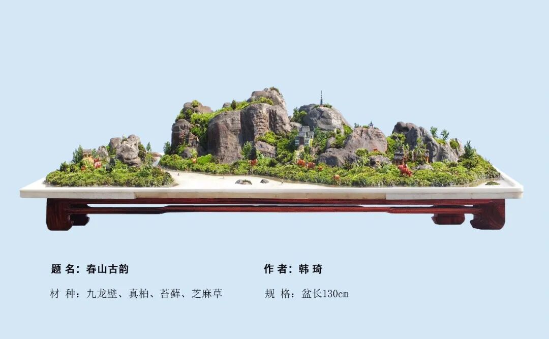 “烟雨三月写江南”九龙璧石、真柏、黄杨、迎春、芝麻草