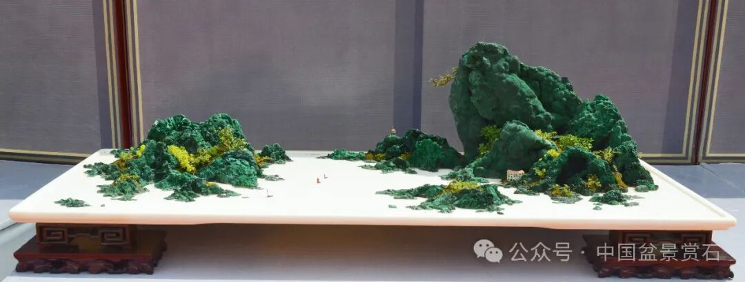 “春江舟行图” 孔雀石、黄金草、薄雪万年青 规格80×32×18cm 郭少波藏品 金奖