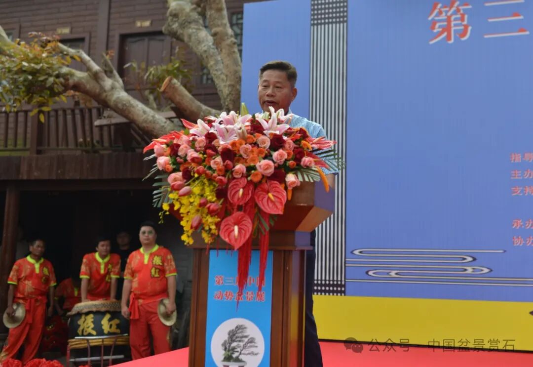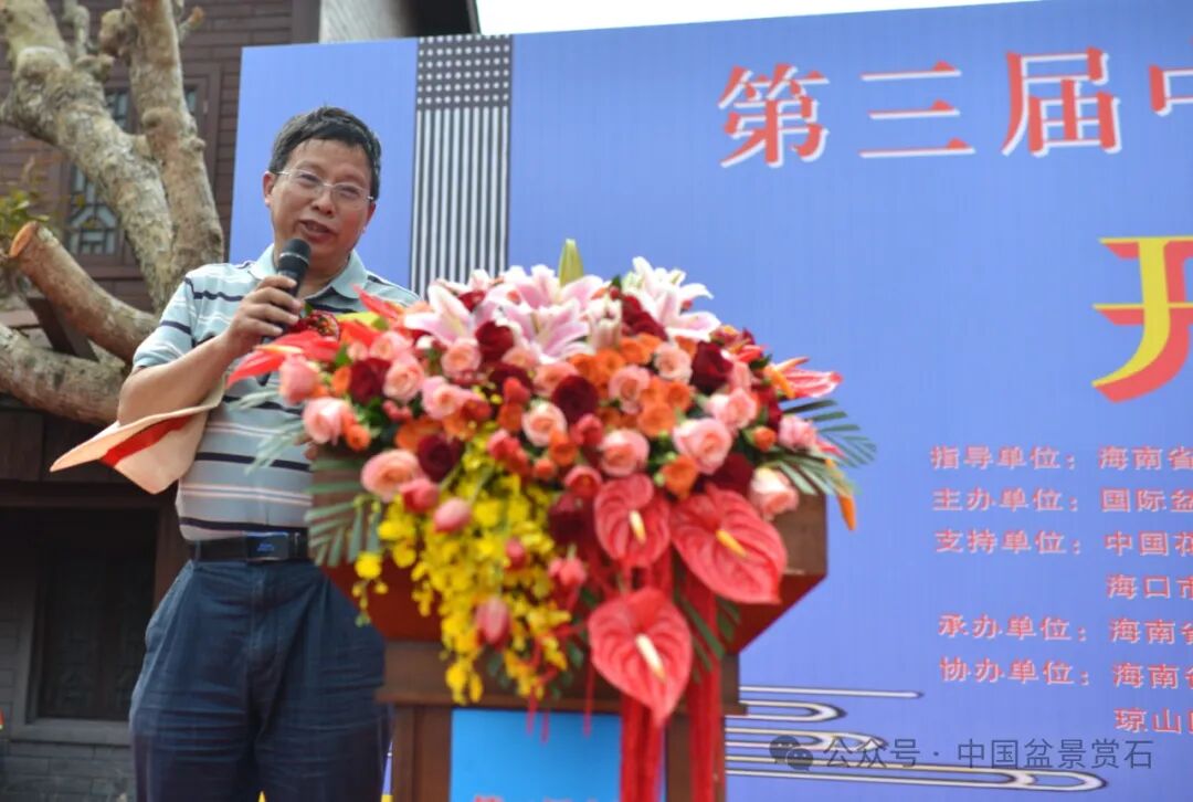 东道主、国际盆景大师、中国盆景艺术大师刘传刚先生致欢迎词