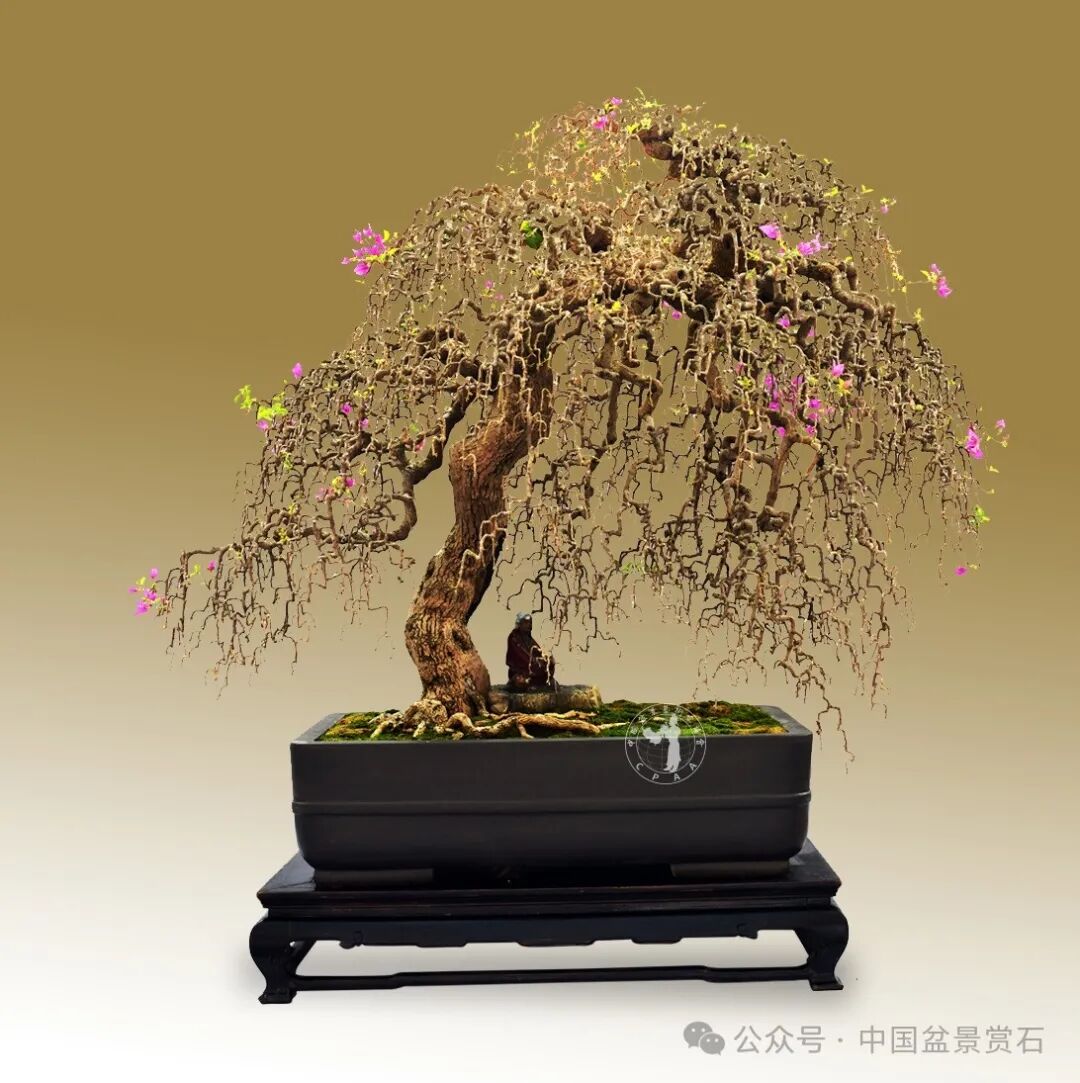 “云重枝垂紫作荫”是三角梅垂柳枝的代表作,从根、干、枝、配件到题名,都侧漏出功到垂成的霸气和婀娜多姿的柔美意境。